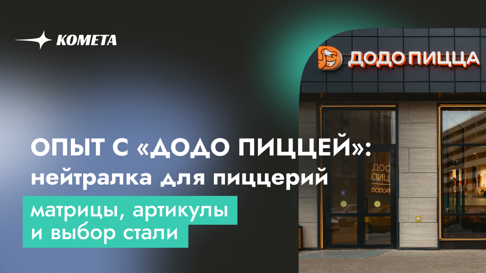 «Комета» развивалась вокруг задач пиццерий «Додо Пицца»: быстрые согласования, работа по стандартизированным матрицам и доработка изделий под конкретные помещения. Поэтому логика «сетевого» процесса и требования к материалам для нас не отдельный кейс, а базовый сценарий работы.